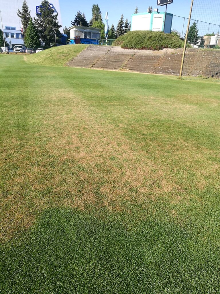 Použití PRP – na silně poškozený trávník jsme aplikovali rostlinný přípravek Plísně, padlí a to v poměru 30ml na litr vody. Celkem bylo použito 10 l postřiku.