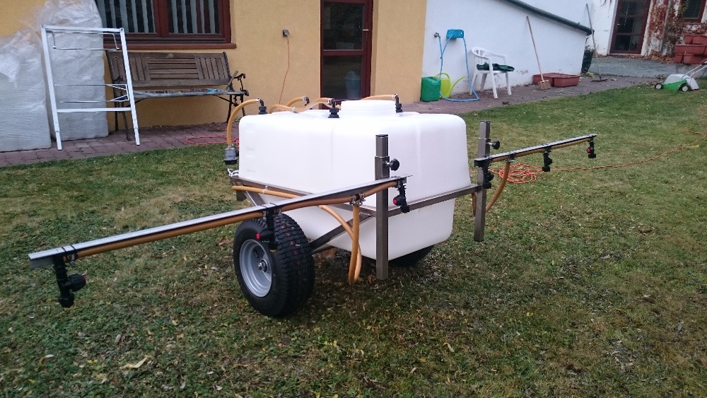 Tažený postřikovač umožní obsluze aplikovat veškeré tekuté přípravky formou postřiku. Vzhledem k nerezovému rámu, špičkové technologii se jedná o nepostradatelného pomocníka pro uživatele s tím, že k jeho manipulaci postačí sekačka, malý traktor a jeho majitelé vzhledem k jeho ceně a vysoké užitkové hodnotě mohou samostatně rozhodovat o aplikaci postřiků.